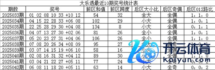 二、前区奖号和值:在贯串十期开奖中前区奖号分别开出和值:54、102、134、81、106、95、58、89、77、63。