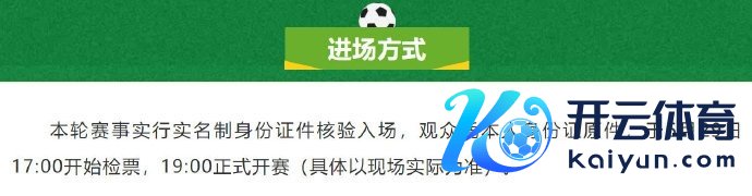 本轮赛事执行实名制身份证件核验入场,不雅众凭本东谈主身份证原件,于6月29日17:00运转检票,19:00留心开赛(具体以现场内容为准)。