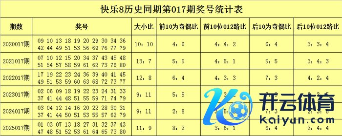 从上表不错看出,在第017期历史同时开奖中,前10为号码奇偶比为30:30,奇偶号码出现频次相配,昨年同时前10位以奇数号码为主,开出了8个奇号,本年同时前10位肃穆偶数号码合乎回补,慈祥奇偶比5:5,看好号码04、05、07、12、15、17、18、19、20、22。