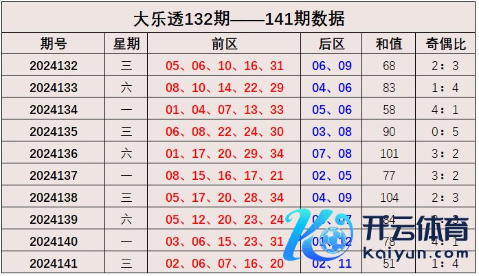大乐透第2024141期出奖号统计:前区02、06、07、16、20,后区02、11。和值为512024买球站体育信息,奇偶比1:4。