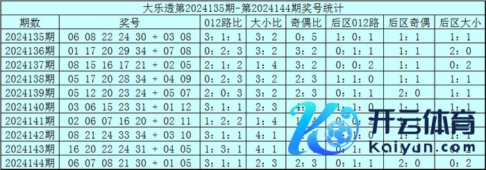 体彩大乐透第24144期奖号为:06 07 08 21 30+01 05,前区奖号012路比为3:1:1,奇偶比为2:3,大小比为2:32024买球站体育信息,后区0路号码轮空。