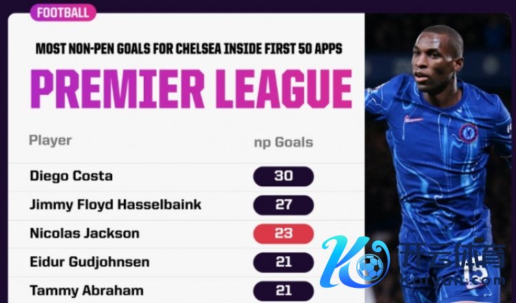 值得一提的是2024买球站体育信息,另一位上赛季才加盟的新援帕尔默也如故为切尔西出战了49场英超,非点球进球数为21球。德罗巴和克雷斯波这两大神锋同时的非点球进球数则是20球。