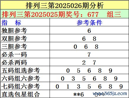 1.陈列三最近十期分裂开出号码:963-956-292-734-159-346-484-788-228-677,其中有6期奖号开出了上期的访佛号码,本期瞻望第2025025期奖号:677中有重号,参考号码:6。