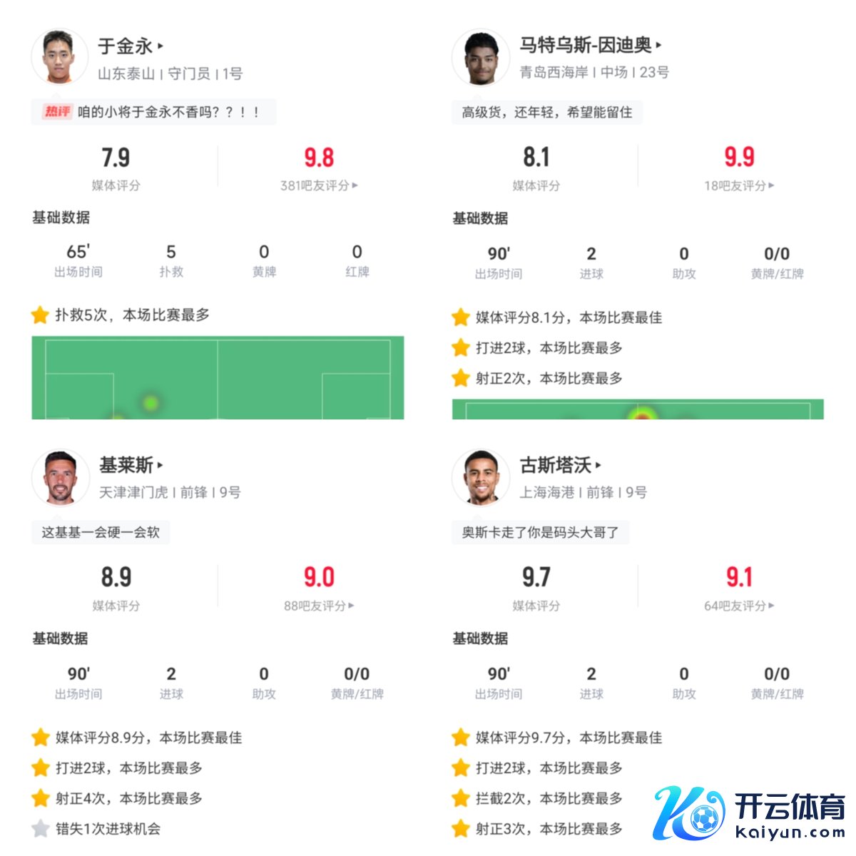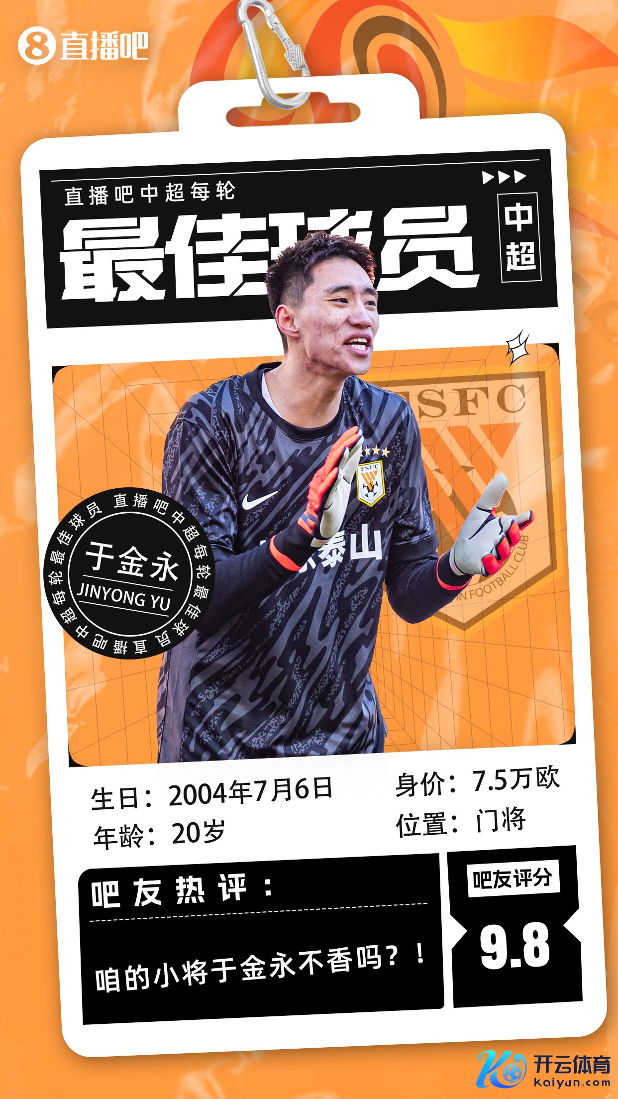 02月24日讯 重磅开启中超每轮最好球员票选,中超首轮最终当选的球员为——山东泰山的门将于金永。这位20岁的小将险胜津门虎先锋基莱斯,他只是只比基莱斯多1.7%的选票。