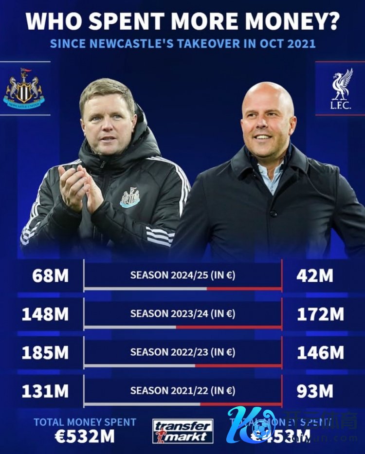 于今绸缪:纽卡5.32亿欧元2024买球站体育信息,利物浦4.53亿欧元