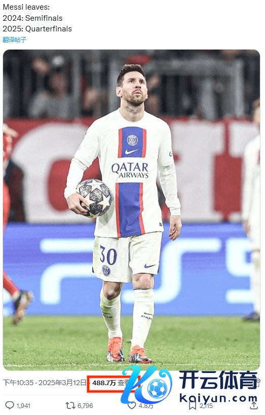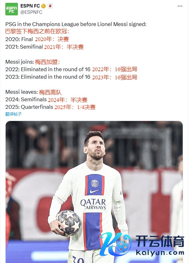 ESPN在赛后发文对比巴黎有无梅西时的欧冠得益,在社媒上成为大热帖,当今浏览量已普及488万。