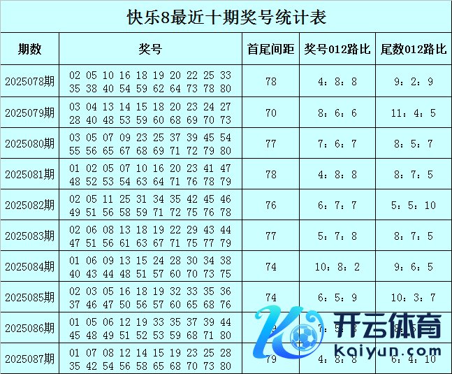 发布日期:2025-11-11 05:50 点击次数:163福彩气象8第2025087期开出奖号:01 07 08 12 14 15 19 23 25 28 35 42 54 56 58 65 68 70 73 80,其中奖号012路比为4:8:82024买球站体育信息,余数012路比为6:4:10。