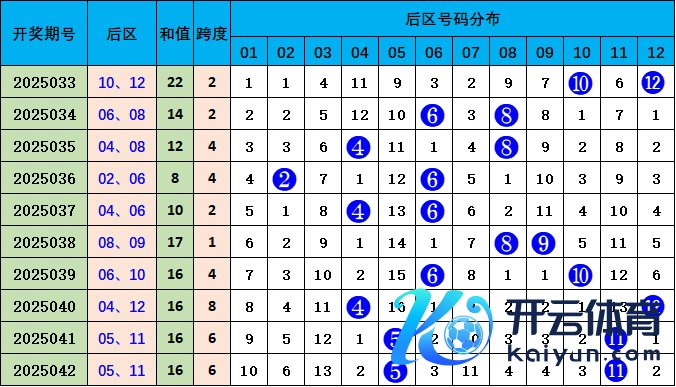 后区概述分析:上期开出后区号码:05 11,跨度6,较前一期比较跨度莫得点位变化。本期瞻望跨度值下落,保举号码:06 10,跨度4。