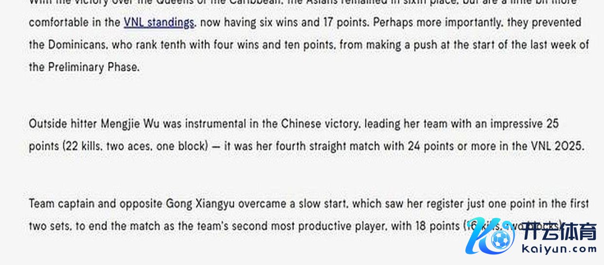 发布日期:2025-11-28 05:00 点击次数:81凌晨三点的手机屏幕刺得东谈主眼睛发酸体育集锦,海外排联官网那行加粗标题却让东谈主片刻清醒——《惊东谈主斗志!中国女排逆转多米尼加》。手指往下滑到第三段,那句"龚翔宇开局状态慢热"像根鱼刺,卡得百万球迷更阑从床上弹起来。这嗅觉就像邻居夸你家孩子覆按超越大,追思又说"等于写字太丑",膈应得东谈主心里直冒火。