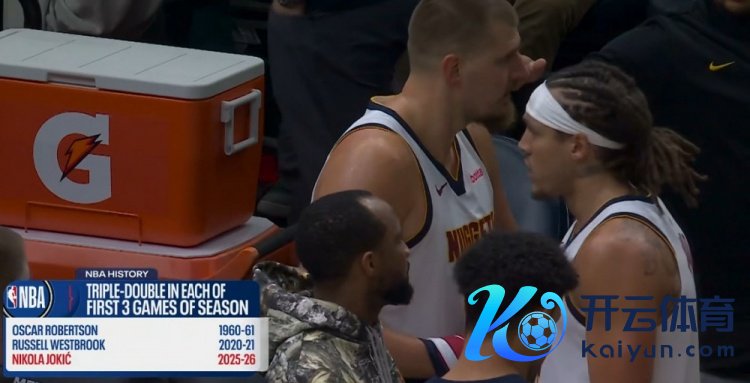 掘金127-114丛林狼,本场比赛约基奇砍下25分19篮板10助攻2抢断,开季相连第三场结束三双。