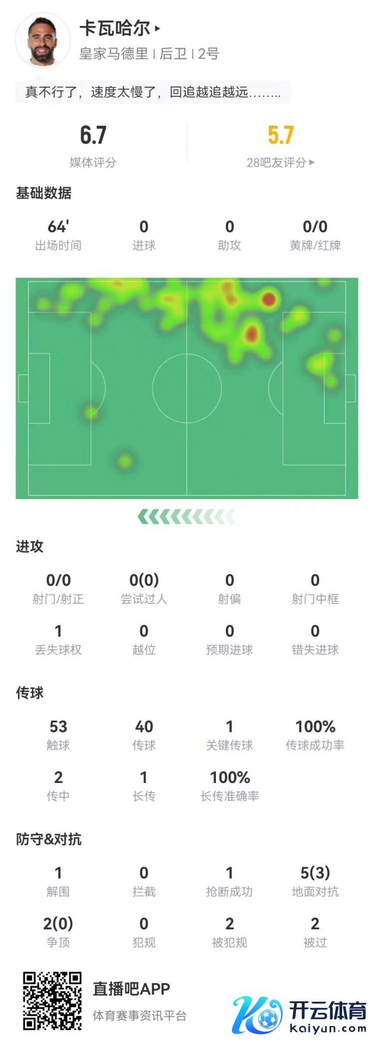 2月22日讯 皇马在本轮西甲对阵奥萨苏纳,卡瓦哈尔首发数据如下: