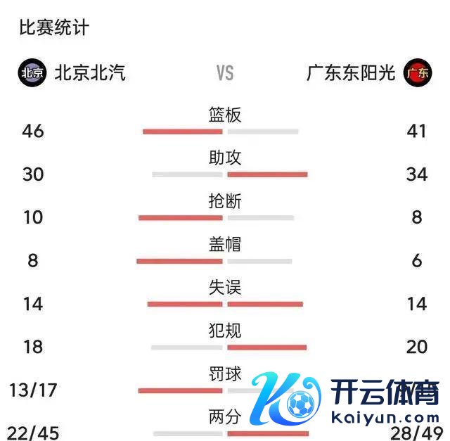 从篮板数来看,北京以46比41逾越.两队都有30多个助攻,14个不实,两队的数据很阁下。北京的三分脱手34次,其中16次脱手,掷中了快要50%的投篮,而广东则是29次脱手惟有12次。北京在远距离投篮上作念得更好,这是他们见效的主要原因。