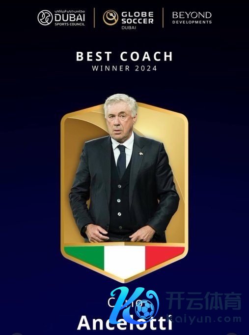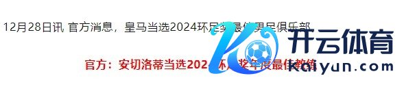 12月28日讯 官方讯息,安切洛蒂当选2024环足奖年度最好栽种。