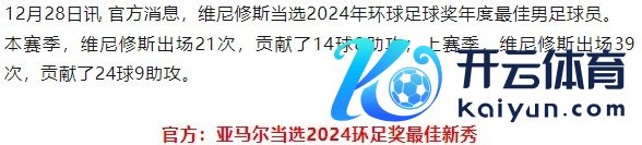 官方:维尼修斯当选2024环足奖年度最好球员