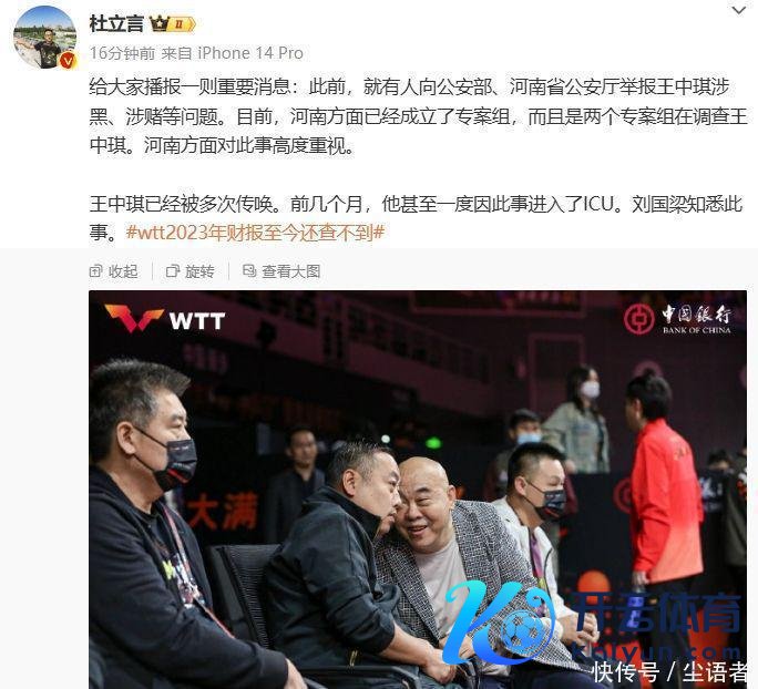 点击输入图片描摹(最多30字)媒体东谈主杜立言在外交平台上发布讯息称:“此前,就有东谈主向公安部、河南省公安厅举报王中琪涉黑、涉赌等问题。当今,河南边面仍是建造了专案组,并且是两个专案组在看望王中琪。河南边濒临此事高度意思意思。王中琪仍是被屡次传唤。前几个月,他以至一度因此事插足了ICU。刘国梁瞻念察此事。”