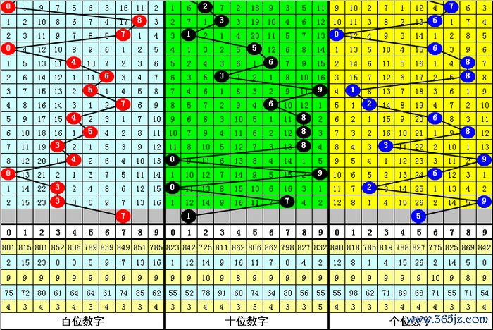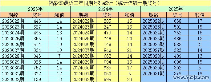 福彩3D上期奖号为379,前年同时与本年同时前20期奖号对比。