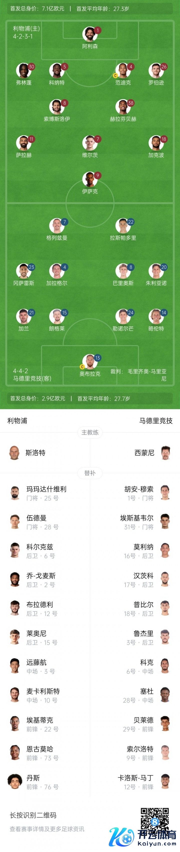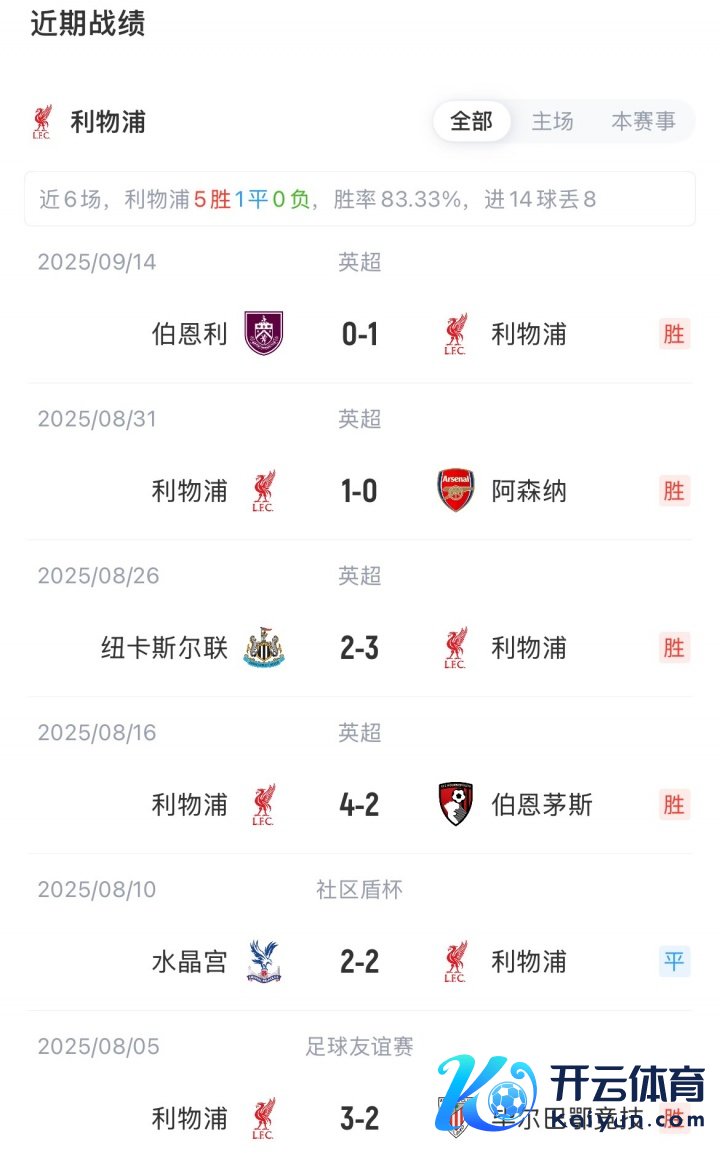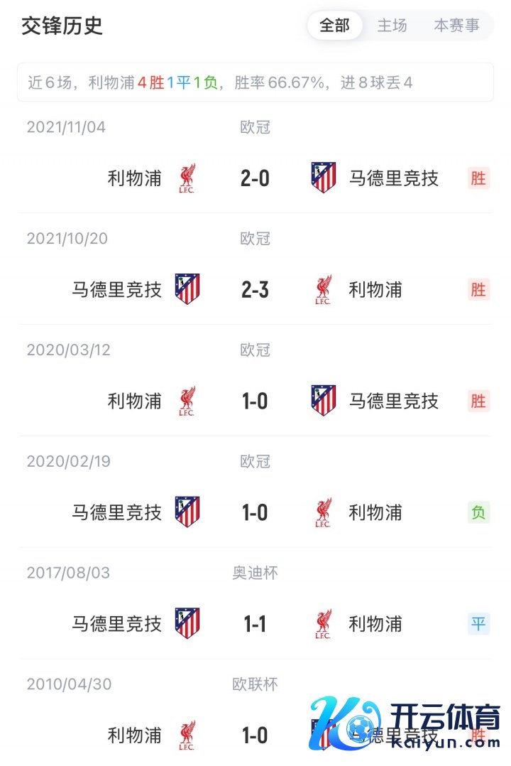 利物浦新赛季情状火热,联赛开局四连胜。马竞则情状欠安,联赛1胜2平1负。径直对决中,利物浦对阵马竞已三连胜。