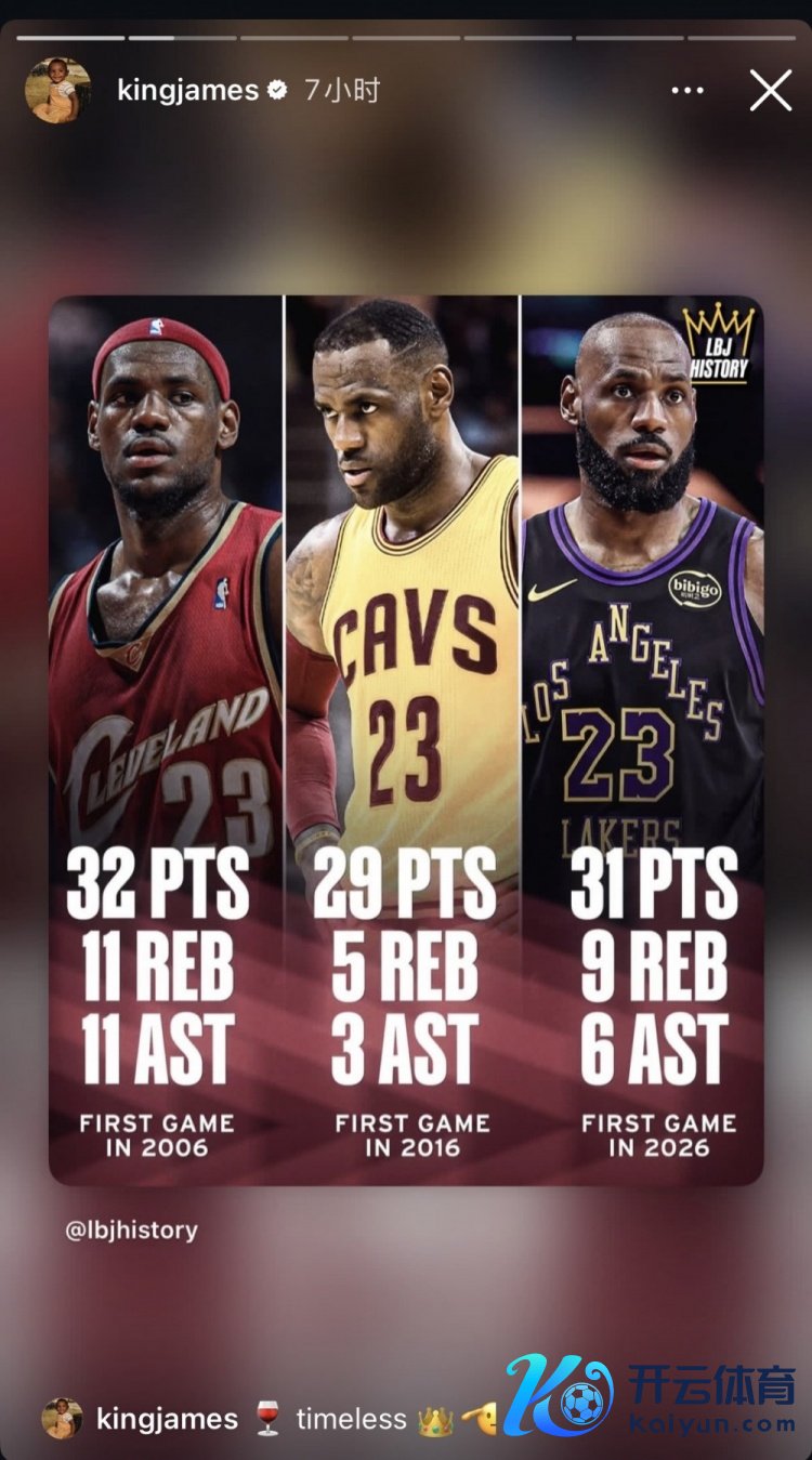 此外体育录像/图片,詹姆斯还转发了我方在2006年、2016年和2026年首战的数据对比图,并计划说念:“🍷不灭👑🫡”