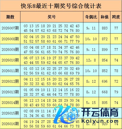 福彩喜悦8第2026016期开奖回顾奖号:04 19 24 27 28 35 36 38 39 45 50 56 58 59 60 61 64 66 73 78体育录像/图片,其中奖号奇偶比为8:12,和值为920,跨度为74。