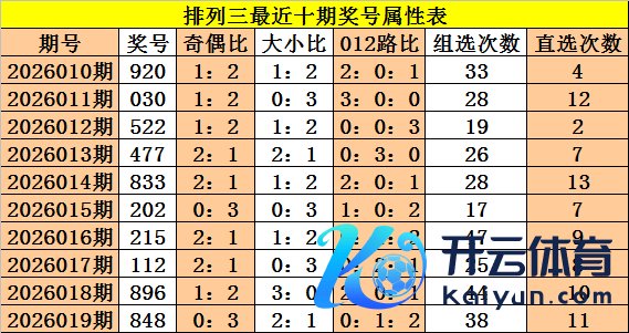 上期总结:体彩罗列三第2026019期奖号:848体育录像/图片,奇偶比0:3,大小比2:1,012比0:1:2。