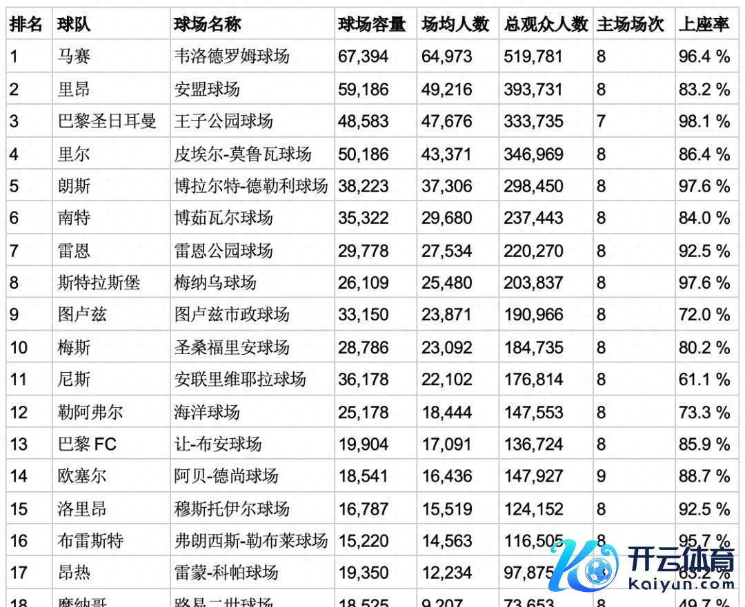 说到法甲的主场氛围,马赛那是当仁不让的老老大。韦洛德罗姆球场,光听这名字就透着股历史味儿。这赛季前8个主场,场均不雅众接近6万5千东说念主,上座率高达96.4%。啥意见?通盘法甲就马赛一家能把场均东说念主数干到6万以上。排第二的里昂场均才4万9,中间差了整整1万5千多东说念主,这差距大得跟断层似的。