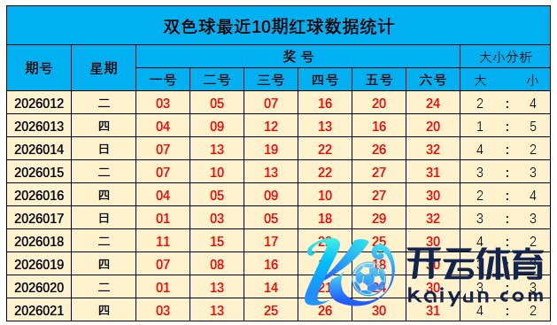 上期红球大小比为4:2,近10期大小比为29:31;总体上小奖号走势稍热,本期关怀大数较上期走势降温,推选大小比为:2:4