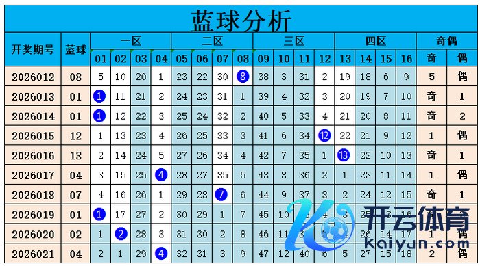 上期转头:双色球第2026021期开出奖号:红球03、13、25、26、30、31;蓝球04