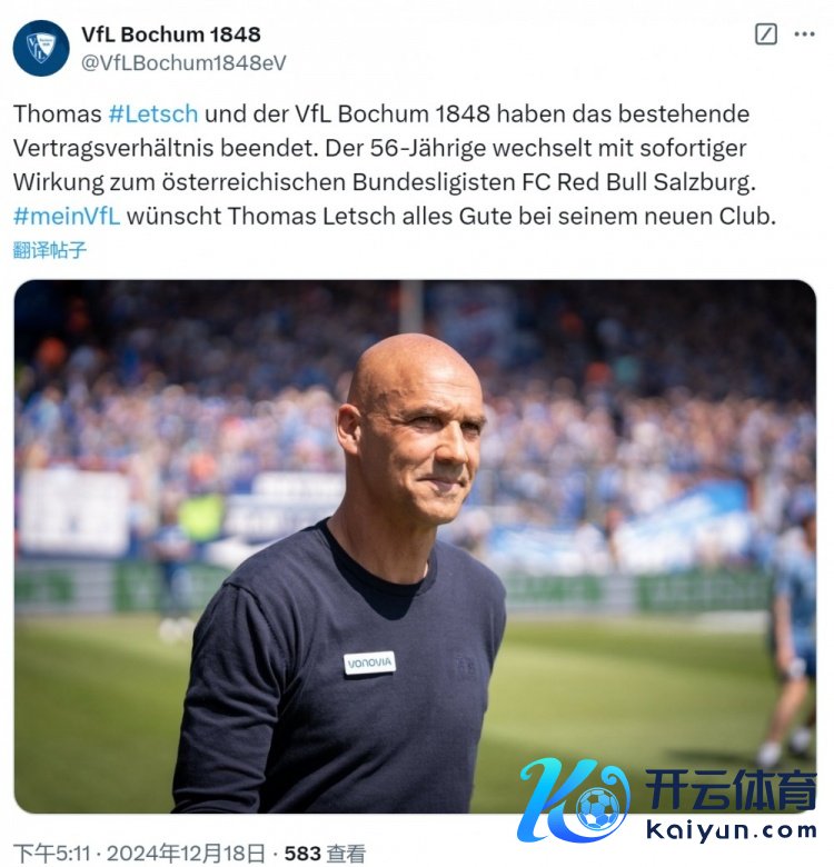 波鸿发布官方公告,证据与莱奇拒绝契约,这位56岁的德国西宾将出任萨尔茨堡主帅。