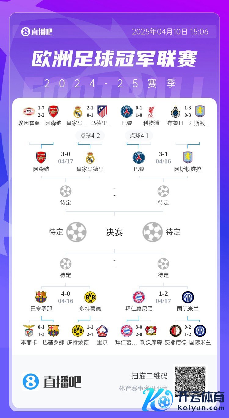 04月10日讯 欧冠1/4决赛首回合战罢,数据机构Football Meets Data给出了本赛季欧冠决赛多样对阵的可能性展望。现在巴萨vs阿森纳的决赛交锋概率最大。