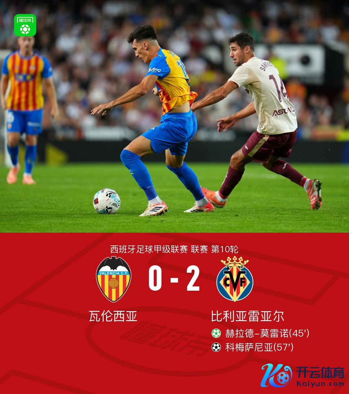 北京时辰10月26日,西班牙足球甲级联赛第10轮张开较量,瓦伦西亚镇守主场迎战比利亚雷亚尔。比赛中,比利亚雷亚尔率先冲破僵局,赫拉德-莫雷诺主罚点球射中,为球队获取率先。随后,科梅萨尼亚策应遑急再下一城体育赛事直播,匡助球队扩大上风。最终,比利亚雷亚尔以2比0客场驯顺瓦伦西亚。