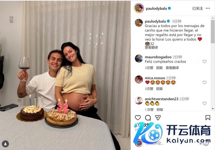 迪巴拉社媒晒出与孕珠内助一齐庆祝的合照,配文:“感谢全球的寿辰祝颂体育赛事直播,最棒的礼物行将到来,我已迫不足待!爱你们通盘东说念主。”