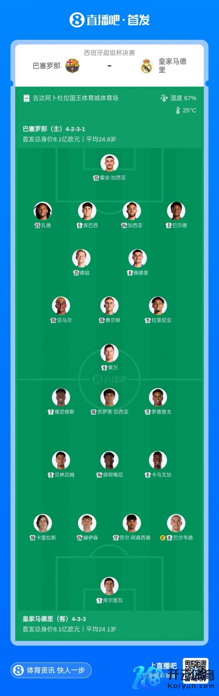 01月12日讯 西超杯决赛,巴萨vs皇马,赛前皇马最早公布的首发图华夏本是居莱尔先发,但皇马而后又新发布了一版首发图,图中贡萨洛取代了居莱尔。