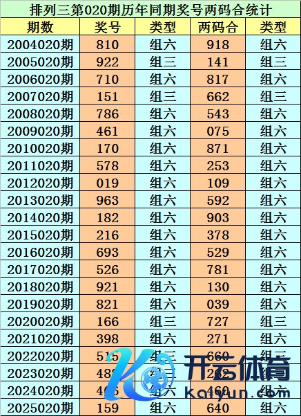 成列三从2004年开奖于今已开出7494期奖号了,其中第020期历史同时奖号出现22次,积年第020期分手开出号码:810、922、710、151、786、461、170、578、019、963、182、216、693、526、921、821、166、398、515、488、406、159。