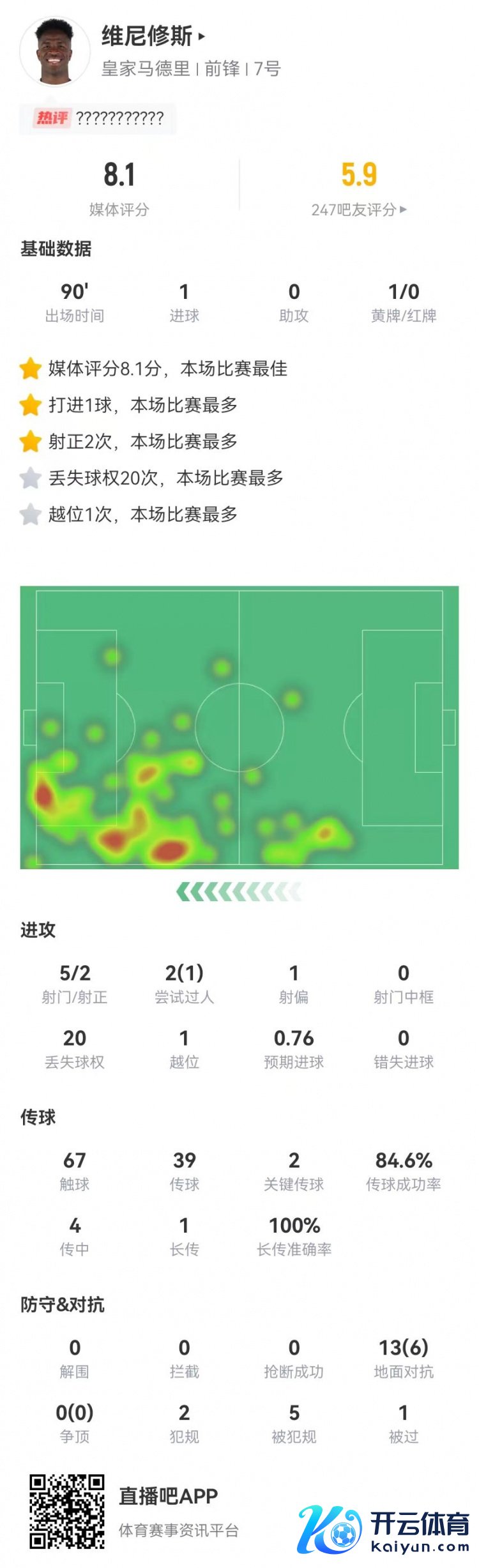 告捷率84.6%2舛错传球4传中1长传13抵拒、6告捷2犯规5造犯规1被过获评8.1分全场最高 体育赛事直播