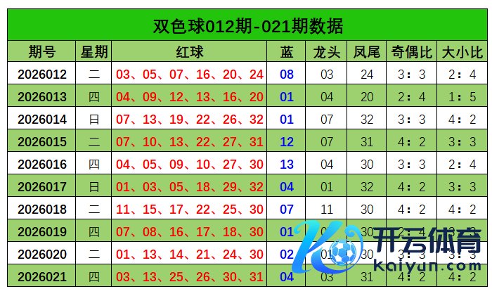 双色球第2026021期开奖奖号:红球03、13、25、26、30、31体育赛事直播,蓝球04。红球龙头03,凤尾31,奇偶比为4:2,大小比4:2。蓝球开出04。