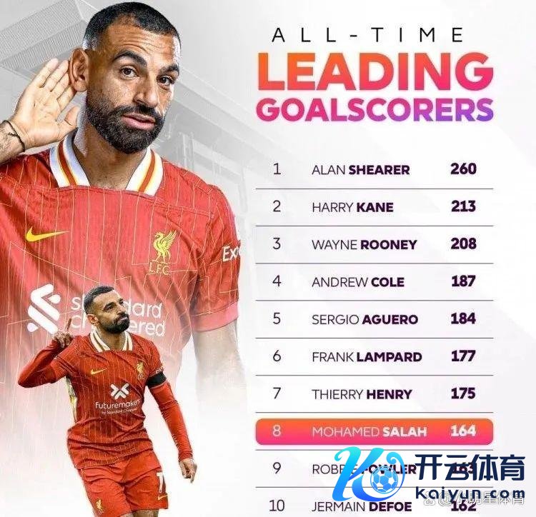 数据统计表露,逆转布莱顿的制胜进球,是萨拉赫个东说念主生活在英超赛场上打进的第164球。凭借此球,在英超历史弓手榜上,萨拉赫精良卓越利物浦传奇时尚罗比福勒,独享历史第八,距离排行第七的亨利大帝仅差11球,距离排行第六的兰帕德还差13球,本赛季有望连接卓越。