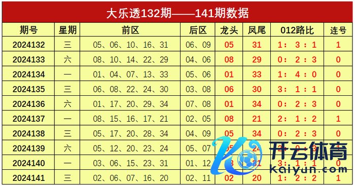 大乐透第2024141期出奖号统计:前区02、06、07、16、20,后区02、11。龙头02,凤尾20,012路比为1:2:2,开出1组连号。