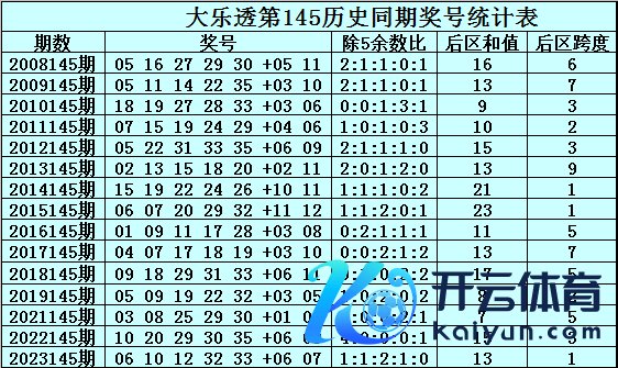 大乐透积年同时第145期前区奖号除5尾数统计分析: