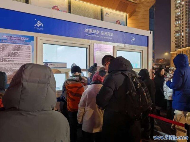 2月5日晚,哈尔滨冰球馆外销票处东谈主气完满。中青报·中青网记者 郭剑/摄