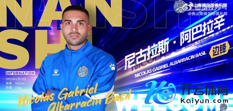 经俱乐部与球员本东谈主友好协商并杀青一致,即日起,球员尼古拉斯·加布里埃尔·阿巴拉辛·巴西尔(NICOLAS GABRIEL ALBARRACIN BASIL)隆重加盟佛山南狮足球俱乐部。新赛季,他将身披南狮战袍,为球队新赛季的征途注入坚实力量!