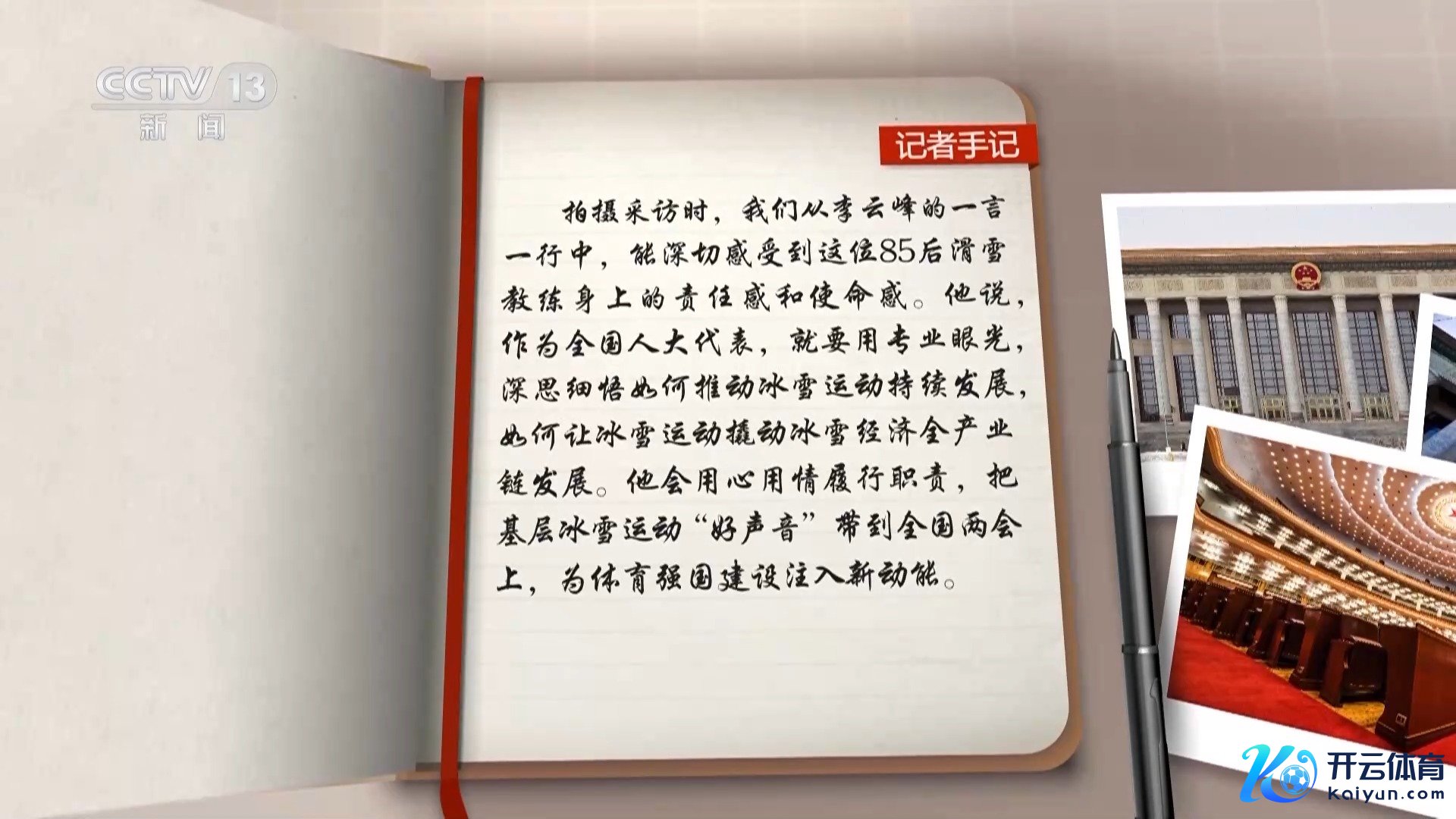 拍摄采访时,咱们从李云峰的一言一滑中,能深入感受到这位85后滑雪教练身上的连累感和责任感。他说,行动寰宇东谈主大代表,就要用专科眼神,深想细悟如何推动冰雪畅通接续发展体育赛事直播,如何让冰雪畅通撬动冰雪经济全产业链发展。他会悉心用情奉行职责,把下层冰雪畅通“好声息”带到寰宇两会上,为体育强国缔造注入新动能。