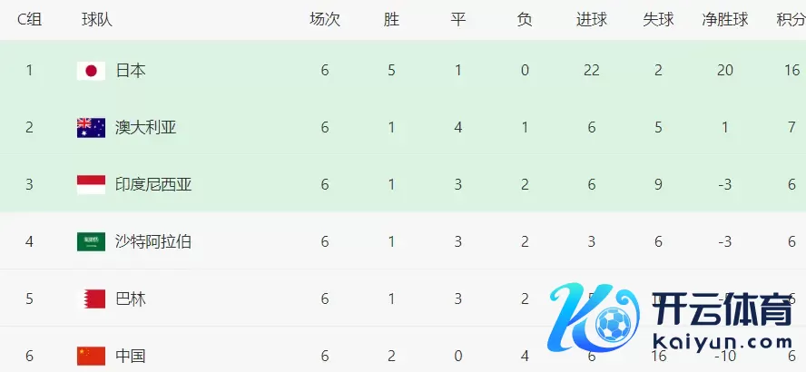 前边6轮比赛事后,国足2胜4负,积6分,暂时排在C组临了一位。不外,天然积分垫底,但却依旧有取得出线权的很大可能。因为国足只是差C组第二的澳大利亚1个积分。是以,只有打好接下来的临了4轮比赛,国足的出线但愿依旧很大。